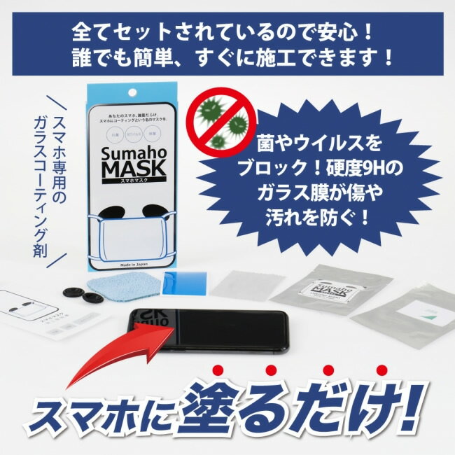 スマホマスク(抗菌・抗ウイルスエビデンス取得済)/ ヤマモトホールディングス・長寿命、高耐久のDIYガラスコーティング スマホに塗るだけ 5年以上効果を発揮するコーティング※必要なものが一式揃っており、誰でも簡単に施工【プレゼント ギフト 贈り物 ラッピング】